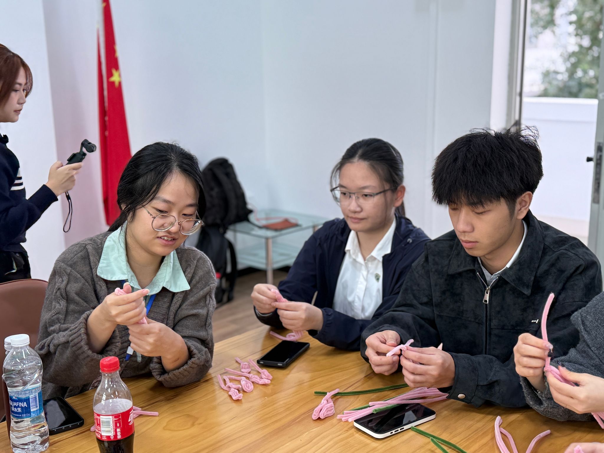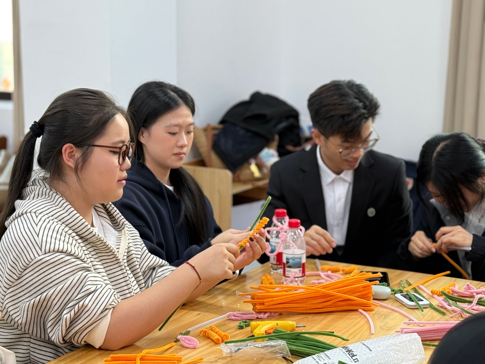 在美育微课堂中,两校师生体验飘漆扇制作、京剧发冠复原、扭扭棒花卉创作等手工项目,感受传统美学与现代创意的融合,增进校际情感联结。