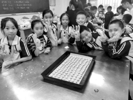 康美中心小学小记者展示饼干成品。