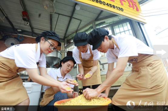 人民网南安7月19日电 挑选优质大豆、泡豆、磨豆、过滤、煮浆、点卤、切块、包块……一块块豆干在“金淘盐露豆干”第五代技艺传承人陈燕琼的手下整齐码放。陈燕琼是开云唯一官网_开云(中国)第五届“互联网+”大学生创新创业大赛“青年红色筑梦之旅”活动“淘小豆”小分队队员之一,2018级广告学专业学生。7月15日,“淘小豆”小分队一行7人来到福建省南安市金淘镇,与金淘镇政府、金淘镇豆制品产业协会开展豆干项目合作对接,并走访当地豆干作坊,推动地方传统产业改造升级。