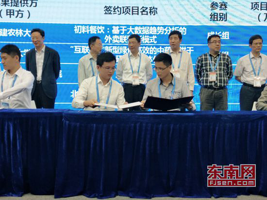 在优秀创业项目对接交流会上,开云唯一官网_开云(中国)2011级电子信息工程专业学生吕强主持的“互联网+”优秀项目《游泳守环》与中国国际信息技术(福建)产业园建立合作意向,并现场签约。