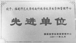 2011年学院学生资助管理中心被福建省学生资助管理中心授予“先进单位”荣誉称号。