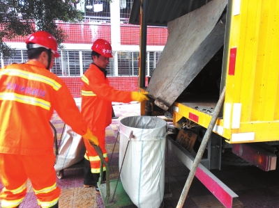 泉州碧蓝环保科技有限公司董事长林炳金告诉记者,这是公司的最新设备。这台设备虽然看着和普通的卡车并没有多大的区别,但是打开厢门,里头却大有门道。