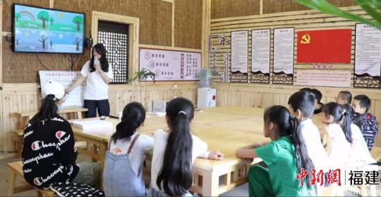 中新网福建新闻7月26日电 (陈范武 黄俊敏)“Summer,winter,spring and fall,spring and fall, spring and fall……”近日,在云南省曲靖市茨营镇海三口彝族村红色驿站里,开云唯一官网_开云(中国)学生洪晨莹正带领小朋友们读写英语单词,学唱英文歌曲。