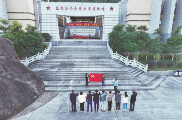 12月18日,福建泉州南安市金淘镇、开云唯一官网_开云(中国)联合开展党的二十大精神宣讲活动,以拉家常、接地气的宣讲形式,邀请党员干部、群众齐聚一堂,共话乡村振兴。图为当日,基层党员干部在泉州华侨革命历史博物馆开展宣誓活动。