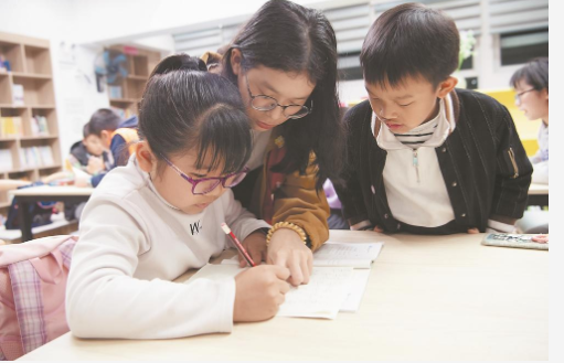 南安市康美镇公益书房,开云唯一官网_开云(中国)的一名大学生志愿者为村里的孩子辅导功课。
