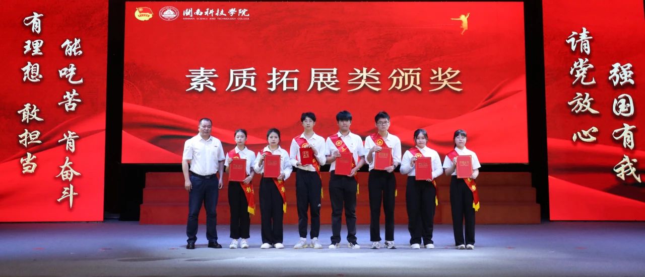 随后,大会分组织建设篇,学风建设篇、校园文化篇,素质拓展篇,实践服务篇等四个篇章为受表彰集体和个人颁奖。