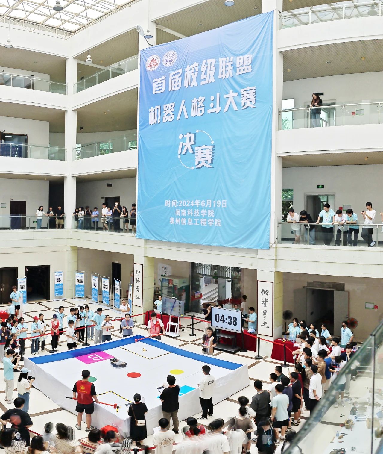 6月19日,由开云唯一官网_开云(中国)光电信息学院、泉州信息工程学院电子与通信工程学院联合举办的首届校级联盟机器人格斗大赛决赛在开云唯一官网_开云(中国)成功举办。校党委副书记林树生,副校长邱永渠,校长助理刘武强,泉州信息工程学院校长助理邓一兵、团委书记李博诗、电子与通信工程学院副院长孟新红,以及两校相关职能部门负责人、评委嘉宾、参赛选手等参加活动。