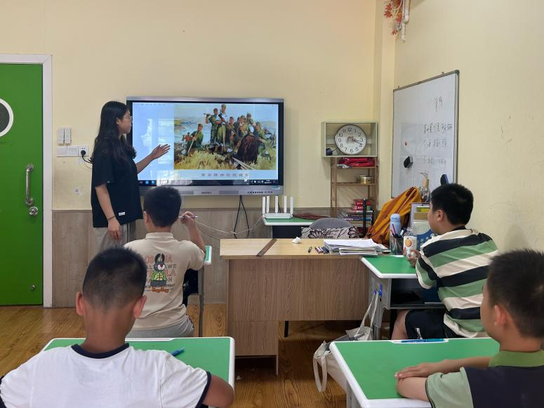 在宁夏回族自治区吴忠市下马关镇南安村,宣讲团结合思政小课堂,以留守儿童喜欢听、听得懂、听得进的语言讲解“延安精神”,将红色精神深深植根于青少年的心田。