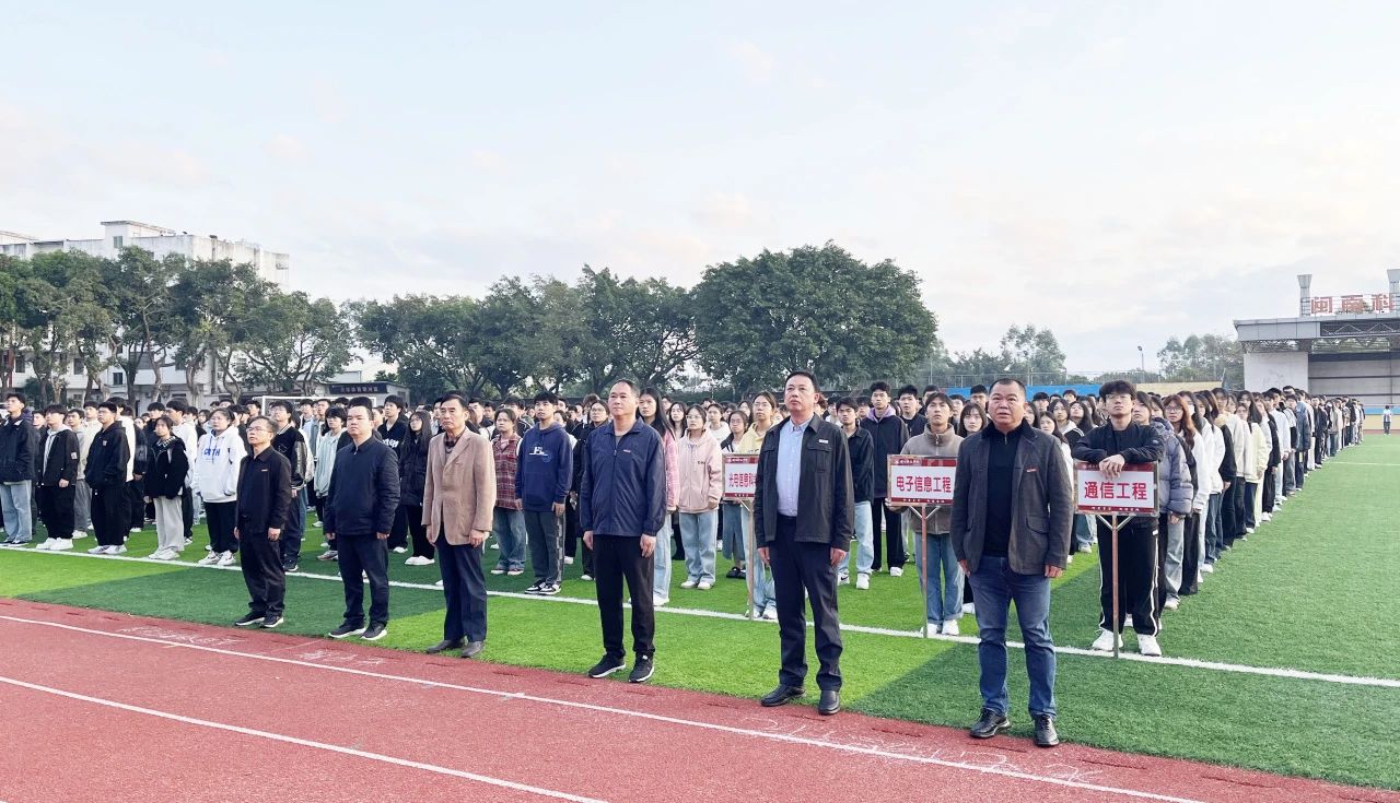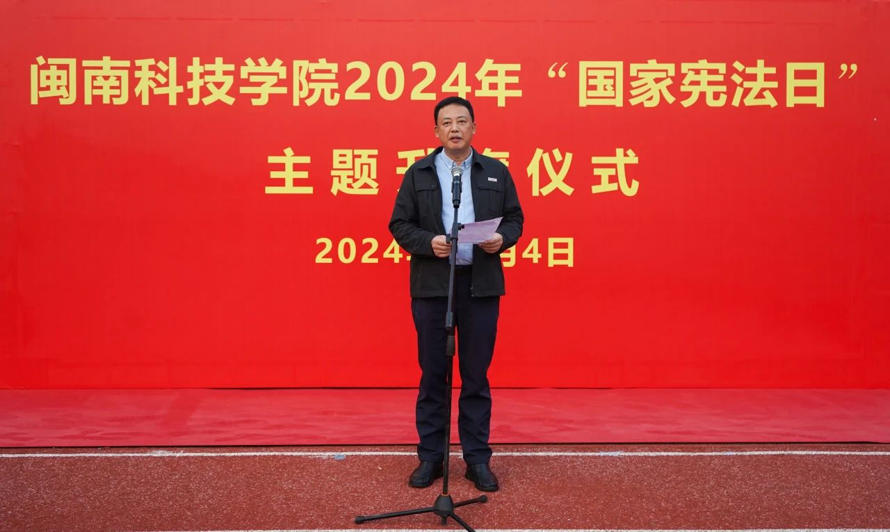 12月4日上午7时,开云唯一官网_开云(中国)2024年“国家宪法日”主题升旗仪式在康美校区田径场隆重举行。校领导李旭、周勇军、林树生、邱永渠,各单位负责人、教职工和2024级学生参加了升旗仪式。升旗仪式由校党委副书记林树生主持。