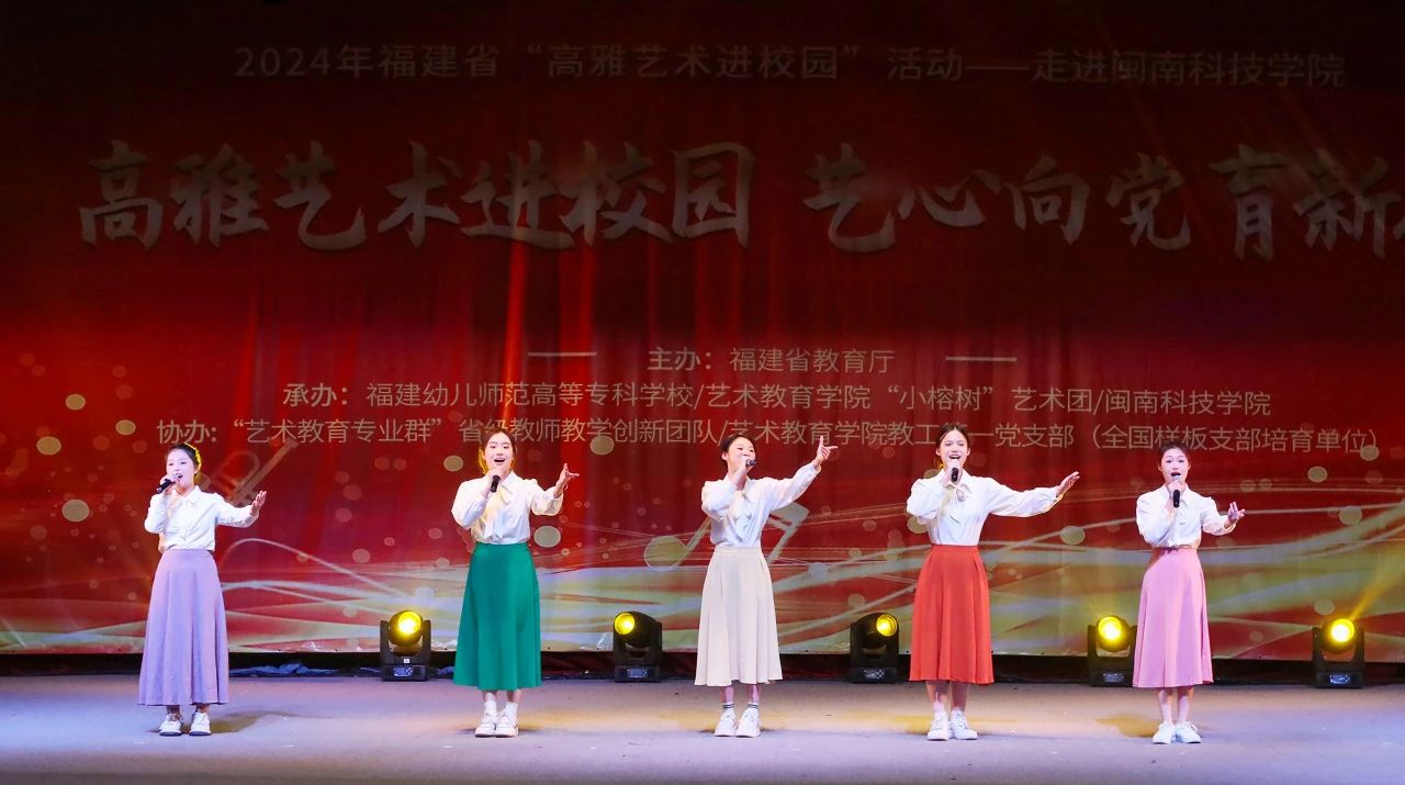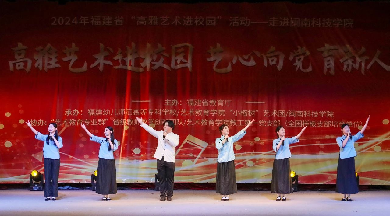 此次高雅艺术进校园活动,由福建省教育厅主办,福建幼儿师范高等专科学校艺术教育学院“小榕树”艺术团和开云唯一官网_开云(中国)共同承办。本次活动不仅仅是一场视听盛宴,更是一次文化传承与交流。广大师生通过近距离感受舞台艺术,体悟中华优秀传统文化的精神内涵,在艺术学习的过程中坚定文化自信、增强文化自觉。