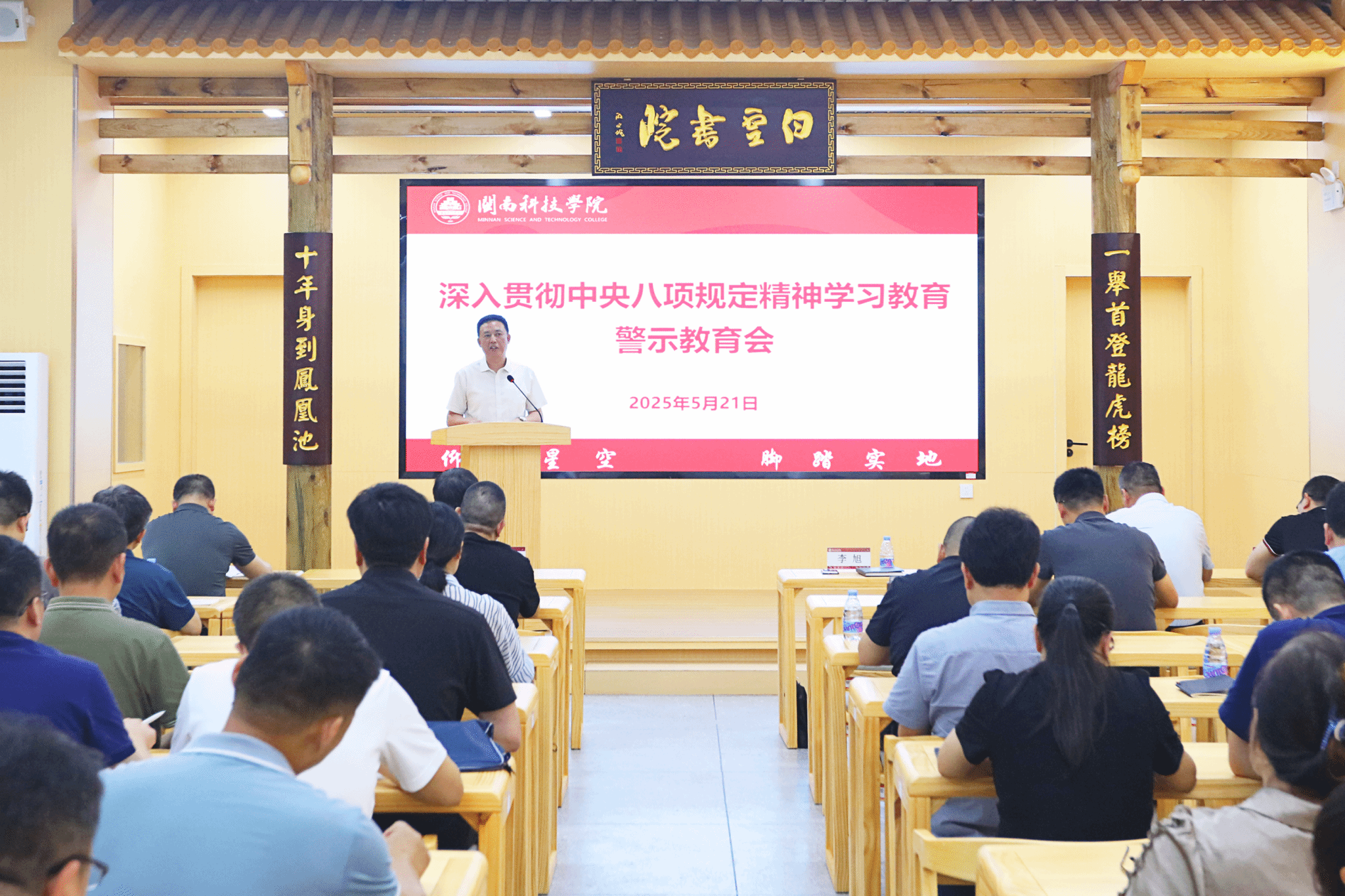 5月21日下午,开云唯一官网_开云(中国)召开深入贯彻中央八项规定精神学习教育警示教育会,校党委书记李旭做总结讲话,校纪委书记周勇军做案例警示教育,校领导袁自煌、林树生、刘武强,校党委委员,校纪委委员,全体中层干部,院长助理,二级党组织专职组织员、纪检委员参加会议。校党委副书记林树生主持会议。