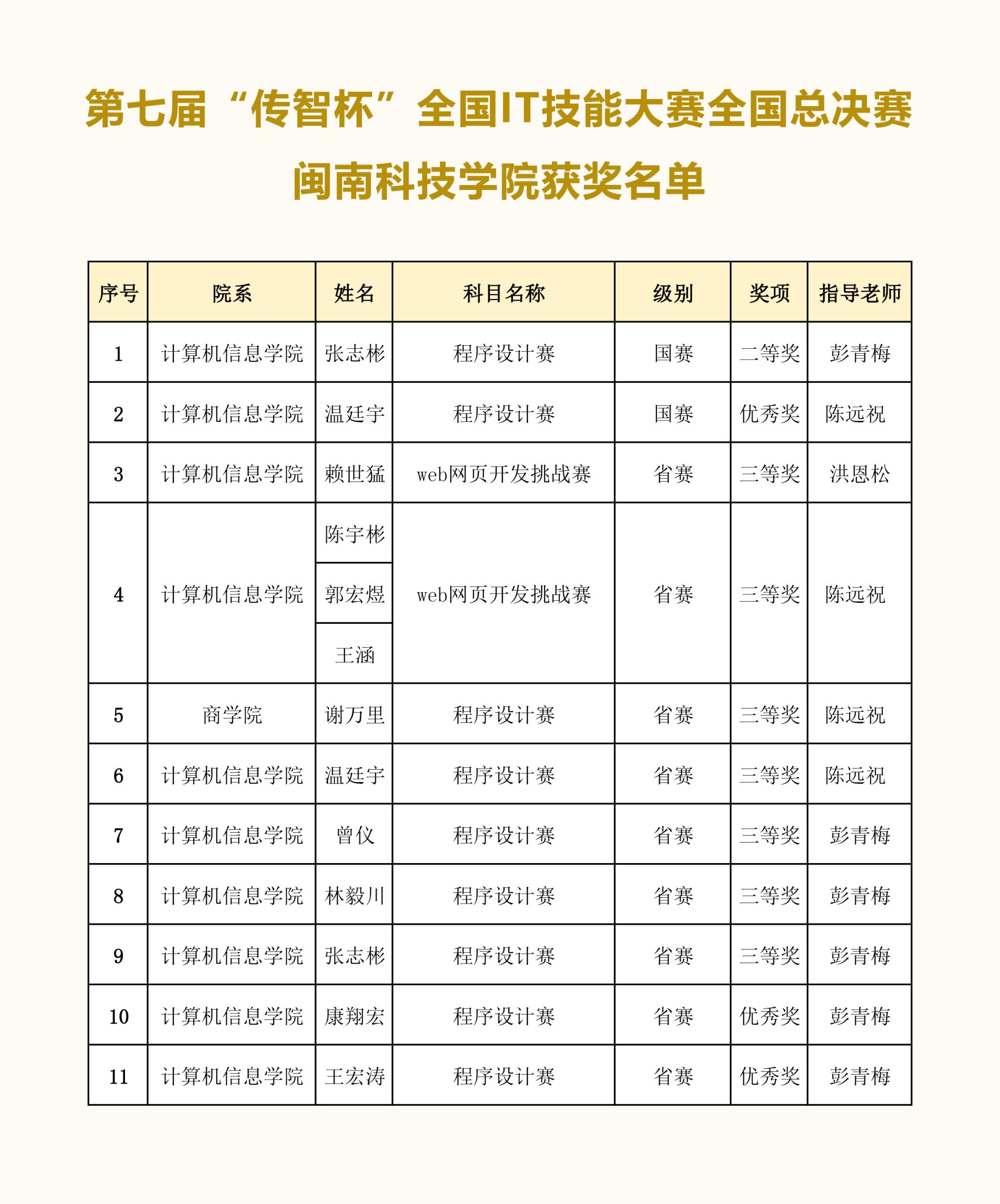 自大赛启动以来,计算机信息学院认真开展备赛工作,制定组织方案,组建指导教师团队,举办校内选拔赛,做好选拔指导培训工作。参赛学子刻苦钻研、积极备战,并在比赛中奋勇争先斩获佳绩,展现了数字时代闽科学子扎实的专业技能和实践能力。