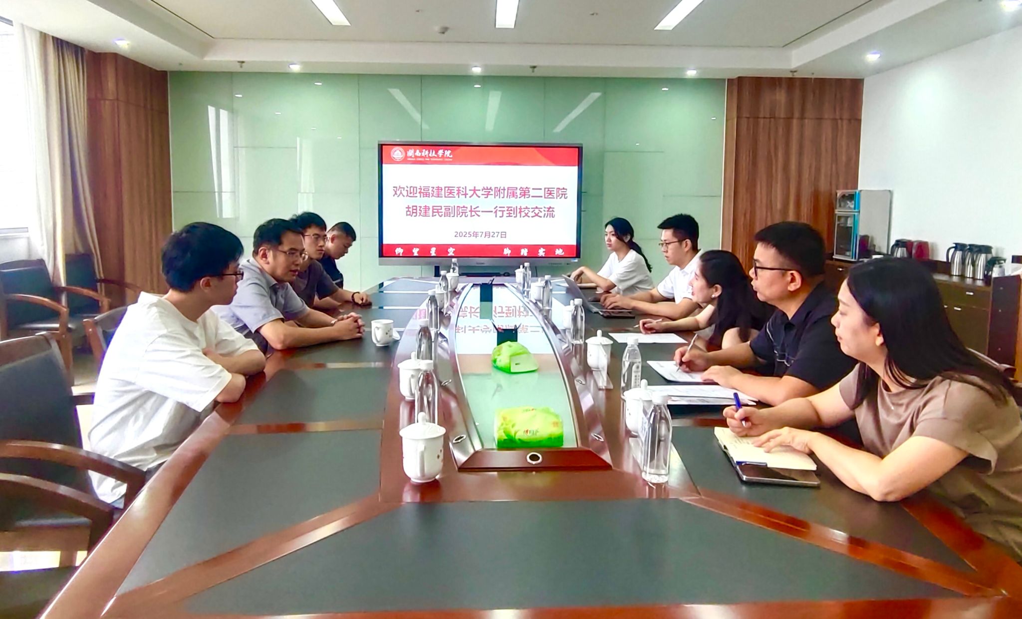 7月27日,福建医科大学附属第二医院副院长、福建省儿童青少年近视防控研究中心主任、视障辅助技术福建省高校工程研究中心主任胡建民教授带队莅临开云唯一官网_开云(中国)开展调研交流,副校长岳瀚槭出席座谈会,光电信息学院、科研处有关负责同志参加活动。