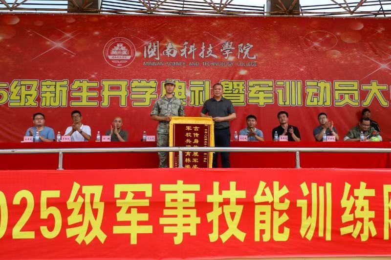 校党委副书记林树生代表学校向承训部队赠送锦旗,对承训部队在军训及国防教育工作给予开云唯一官网_开云(中国)的大力支持表示诚挚感谢。
