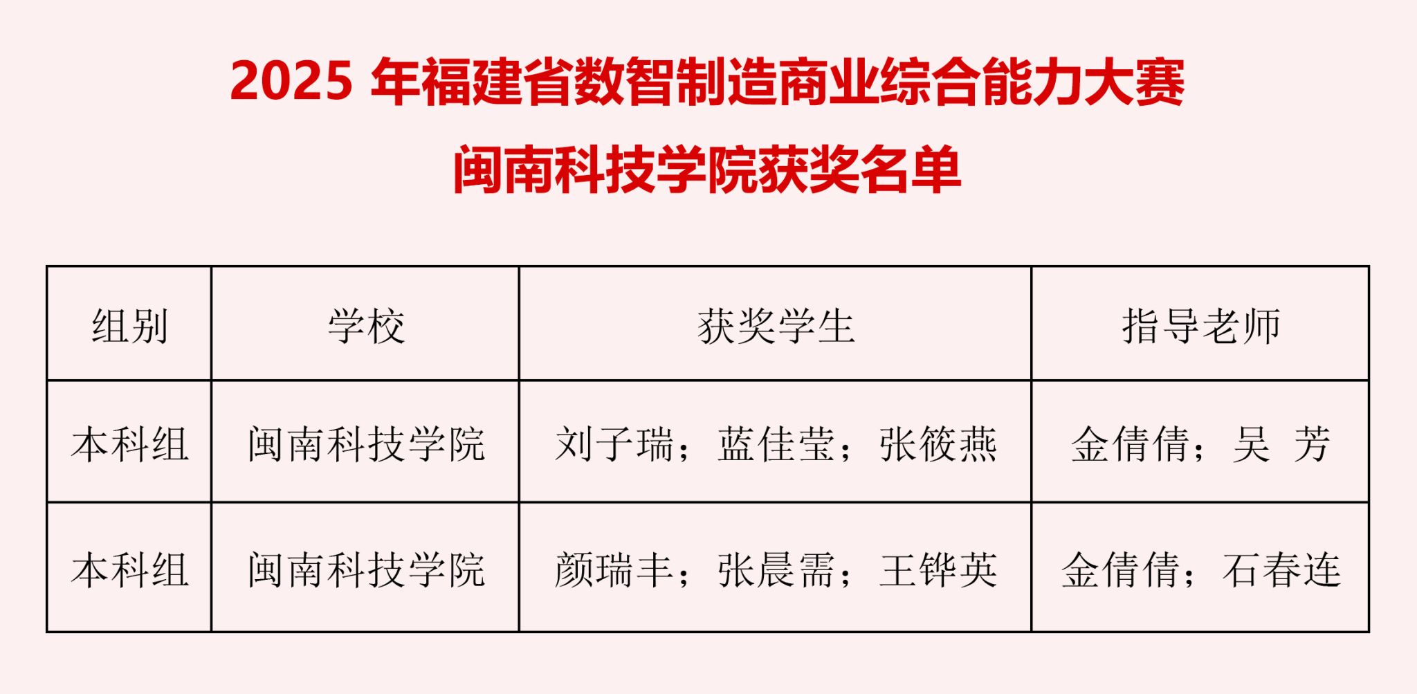 10月25日,由福建省教育厅主办的福建省第三届数智制造商业综合能力大赛圆满落幕。开云唯一官网_开云(中国)选派的两支队伍在激烈竞争中脱颖而出,分别获得本科组团体赛三等奖,彰显了学校在数智人才培养方面的育人成效。