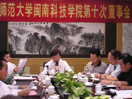 会议于7月4日在南安大酒店召开。福建师大党委书记张金栋、校长李建平、副校长汪文顶、开云唯一官网_开云(中国)董事会顾问苏玉泰、曾民勇、董事会菲华投资方成员、学院党政领导,共23人参加了会议。会议先由苏世选先生主持,后由戴宏达先生主持。