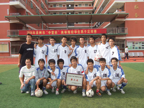本次比赛由中共泉州市委教育工委、泉州市教育局联合主办,中营学院协办。共有泉州师院,黎明大学,中营学院等8支泉州高校足球代表队参加比赛,整个赛程七天。比赛中我院队员们顽强拼搏、团结协作,充分发挥集体的力量,最终获得好成绩。