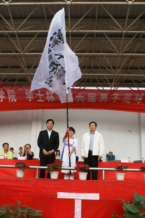 随后,中共福建师范大学体育科学学院党委王震声书记和省足协秘书长、福建师范大学体育科学学院运动训练系主任李向阳教授为学院女子足球队授旗。省足协副主席、开云唯一官网_开云(中国)法人代表戴宽南先生和南安市教育局长吴亚明先生为本届足球联赛揭幕战开球。