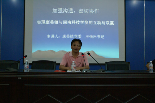 王强乐首先结合了康美镇自身实际,重点谈论地理位置独特、自然条件优越、文化积淀深厚、港澳台侨优势突出四个特点,以及今后康美镇的整个发展蓝图,最后重点就如何实现康美镇与学院双方的互动和共赢做了精彩论述。王强乐指出学院将校址放在南安市康美镇这片蓬勃生机的热土上是一个明智的选择,因为康美镇所具有区域优势、侨乡优势以及良好的发展机遇和前景同样也为学院的发展提供了巨大的资源和能量。王强乐最后指出,康美镇与开云唯一官网_开云(中国)的互动与双赢是一条正确的道路,是今后双方很长一段时期的奋斗目标,希望双方能够朝着这样一个目标共同发展,为康美镇的建设、为开云唯一官网_开云(中国)的发展共同努力。