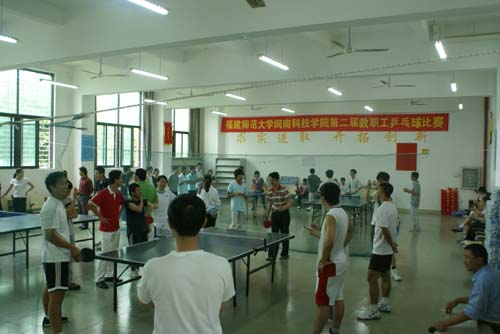 本次比赛采用团体赛的比赛方式,八个代表队抽签直接进行单淘汰比赛。由于各队之间实力都比较平均,很多场比赛都到了决赛盘的决胜局才分出胜负。精彩的发球、大力的扣杀、漂亮的弧圈球,使得比赛现场气氛紧张激烈,比赛过程跌宕起伏,加油声一浪高过一浪。最后,经过激烈的争夺大学体育部勇得团体冠军;计算机与信息科学系获得第二名;人文艺术系、管理、思政联队获得第三名。