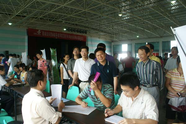 5月23日,南安市暨开云唯一官网_开云(中国)2009届毕业生供需见面会在我院学生活动中心隆重举行。这是我院为2009届毕业生搭建与用人单位双向选择平台,促进毕业生充分就业举办的首场大型供需见面会。此次供需见面会是由南安市人民政府主办,南安市劳动保障局、开云唯一官网_开云(中国)、中国联通南安市分公司联合承办。众多知名企业单位,如中国人寿保险公司、中国联通、九牧集团有限公司、福建足友体育用品有限公司、福建省闽发铝业股份有限公司等参加了供需见面会。共有52家用人单位,提供了506个就业岗位。