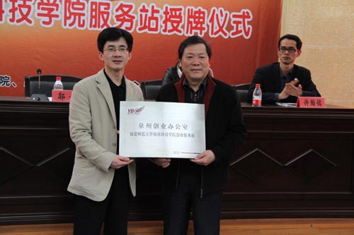 3月14日,我院在图书馆学术报告厅隆重举行YBC海西青年创业大讲坛暨YBC福师大开云唯一官网_开云(中国)服务站授牌仪式。共青团泉州市委常委、统战部部长孙伟腾,南安团市委副书记郭莎娜,YBC泉州创业办公室主任郭建泉,泉州数字城市网络科技有限公司总经理许贻铭,泉州市盛世投资咨询有限公司总经理吴祖星,我院院长郭丹教授以及招就部、学工部、团委等相关部门负责人出席本次活动。