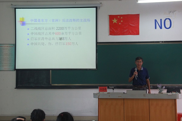 为传承和弘扬以爱国主义为核心的民族精神、伟大的抗战精神,进一步培育和践行社会主义核心价值观。9月23日,福建师范大学社会历史学院博士生导师、世界史教研室主任、中国世界现代史研究会理事王坚德教授受邀做客“开云唯一官网_开云(中国)”,作了题为“《中国抗日战争在反法西斯战争中的地位与作用》——兼析当前中日关系”的讲座。讲座由院关工委主任、光电信息科学系主任杨文琴主持。
