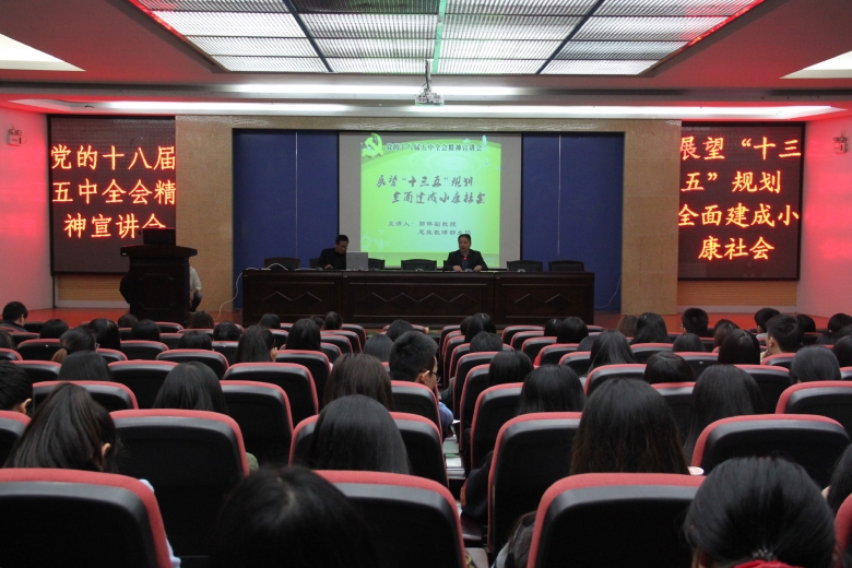 宣讲会上,郭伟副教授从党的十八届五中全会召开的历史背景、重大意义,“十三五”规划建议的新理念、新思路、新举措以及全面建成小康社会新的目标要求等方面对党的十八届五中全会精神进行了深入细致的剖析和讲解,并对泉州市“十三五”规划的建议进行了全面分析介绍。整场报告主题鲜明、内容丰富、分析透彻、深入浅出,对全院师生深刻领会全会精神、更好地开展工作具有重要指导作用。