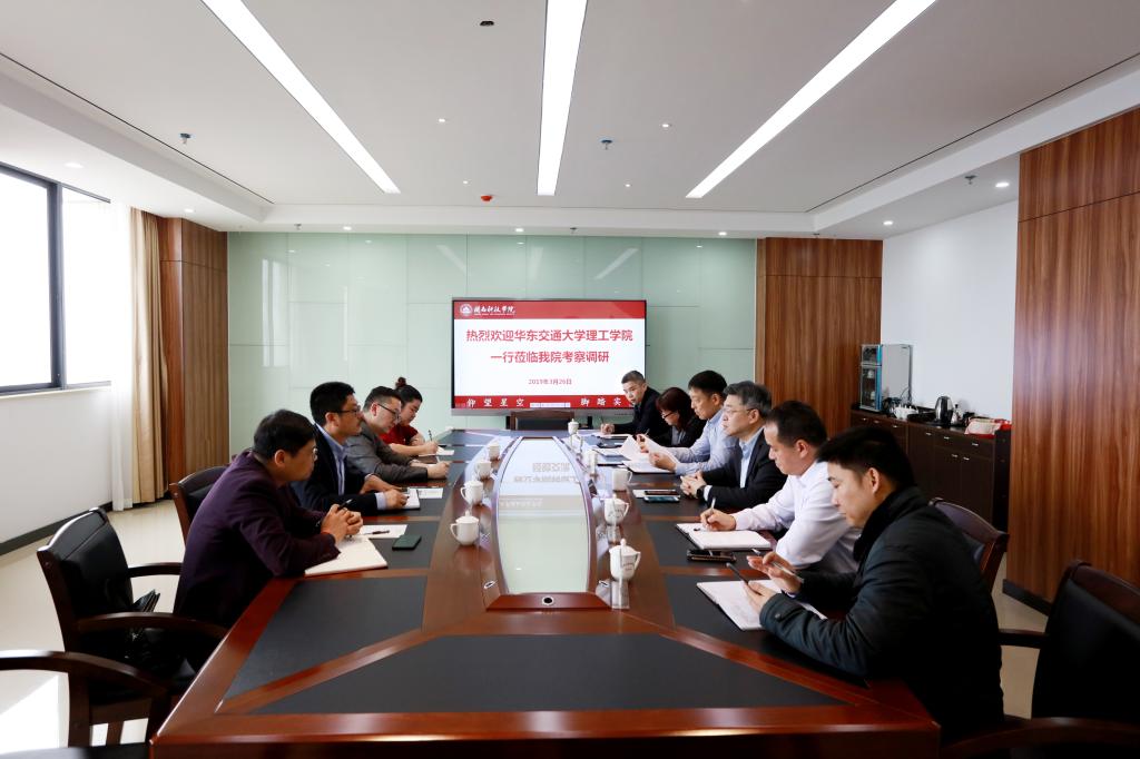3月26日上午,华东交通大学理工学院党委书记楼世礼、董事长助理尧刚华一行4人莅临我院交流学习。院领导张杰、周勇军、吴勇,及相关职能部门负责人出席交流会。