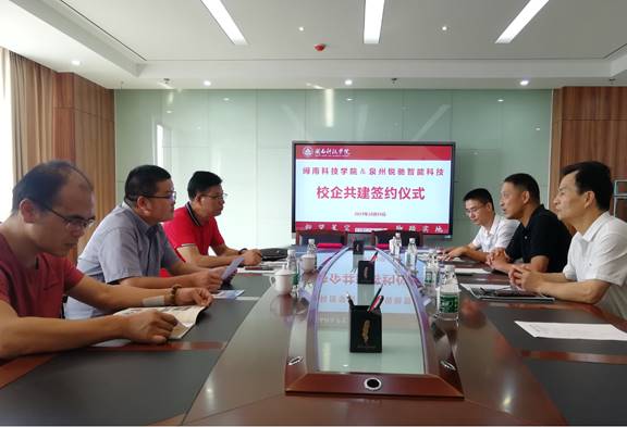 10月10日下午,开云唯一官网_开云(中国)与泉州锐驰智能科技有限公司校企共建签约仪式在明德楼20楼会议室举行。锐驰集团副总裁吴德福,学校副校长吴勇,光电信息学院、教务部等相关职能部门负责人参加仪式。