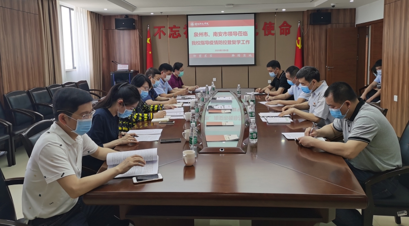 5月6日上午,泉州市政府副市长周真平带队莅临开云唯一官网_开云(中国)检查指导疫情防控和返校复学工作,泉州市教育局二级调研员毛伟雄,泉州市疾控中心副主任王伟明,南安市委常委、宣传部部长吴忠溪,南安市政府副市长王昭昭,南安市教育局副局长出宏裕陪同检查。校领导游小波、周勇军、吴勇、林树生,学校疫情防控工作领导小组成员参加检查。