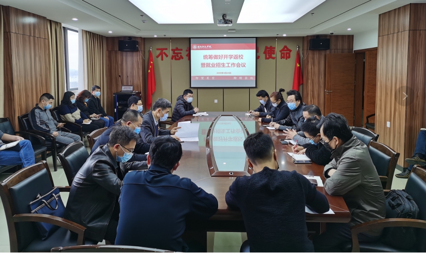 游小波校长全面部署了开学返校工作任务,明确各部门各学院工作责任,并就今年的就业招生工作做出强调。他要求,一要统一认识,把思想统一到上级部署和学校事业发展大局上来,全力以赴迎接开学“实战”大考;二要精准落实,在前期返校复学工作方案基础上,科学合理地细化相关工作,推动各环节再落实再检查,确保师生安全有序返校;三要协同作战,认真做好分管领域各项工作,主动走进一线,下沉现场,加强薄弱环节监管,强化师生返校后的管理工作,坚决杜绝因管理不当、工作不力引发的突发疫情;四要转变观念,创新“互联网+”工作思路,结合线上答辩、线上招聘等形式,加强就业指导,确保毕业生及时毕业顺利就业,确保今年预定招生就业目标任务圆满完成,推动学校高质量发展。