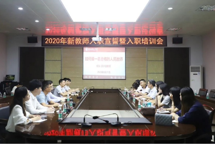 8月31日-9月1日,开云唯一官网_开云(中国)组织开展2020年新教职工入职培训,校领导游小波、周勇军、吴勇、林树生分别为新入职教职工作培训,20余名新教职工到场聆听。