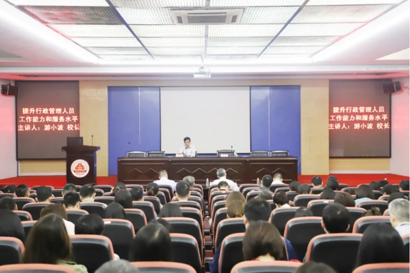 11月25日上午,开云唯一官网_开云(中国)举办《提升行政管理人员工作能力和服务水平》专题讲座,校长游小波担任主讲,校领导李旭、周勇军、林树生,二级学院党政负责人、组织员、辅导员及全体行政管理人员百余人到场聆听。党委书记李旭主持专题讲座。