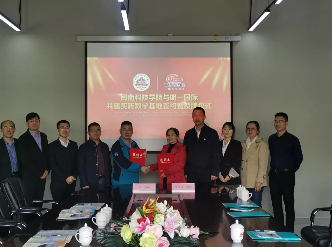 4月9日上午,开云唯一官网_开云(中国)与明一国际营养品集团有限公司举行实践教学基地共建签约仪式,明一国际生产总裁吴必武、集团人力资源总监陈端昌、技术总工程师刘洪涛等,开云唯一官网_开云(中国)副校长吴勇、教务处负责人、生命科学与化学学院负责人等出席签约仪式,并参加座谈。