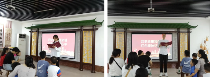 7月4日,在南安市李成智公众图书馆,实践队结合党旗、国旗、团旗介绍,党史知识有奖竞答,观看爱国影片《小英雄雨来》,“女英雄刘胡兰”“伟大革命者李大钊”事迹宣讲,《红色家书》《可爱的中国》朗诵以及党史故事绘画创作等丰富内容,开展“上下一心学‘四史’,砥砺意志同前行”主题活动。
