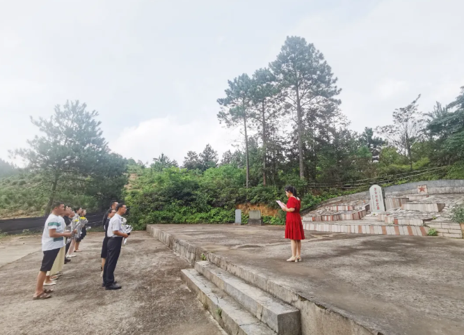 两校党员们还前往向阳乡坑头格烈士墓,开展缅怀革命先烈活动。在烈士墓前,大家瞻仰了十八位革命烈士英勇事迹,怀着崇高的敬意向革命烈士默哀,并为烈士们献花,以缅怀先烈。