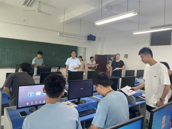 9月6日,新学期开学第一天,校领导游小波、周勇军、林树生、邱永渠带队,在教务处、二级学院的陪同下深入康美校区和美林校区,实地检查新学期开学第一天的教学工作,主要从师生到位情况、课程安排、教室环境、教学设施运行等方面进行了全面检查,确保新学期教学工作顺利开展。