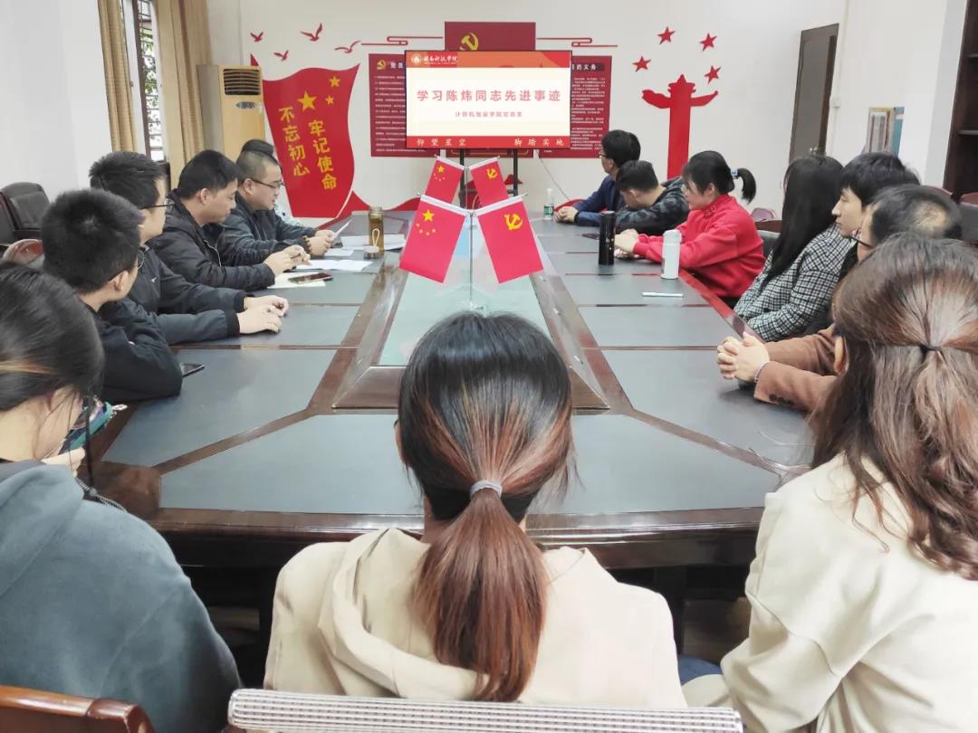 12月22日,计算机信息学院组织开展学习陈炜同志先进事迹专题学习会,学院党总支书记汪艺明、全体党支部书记、辅导员参加学习。