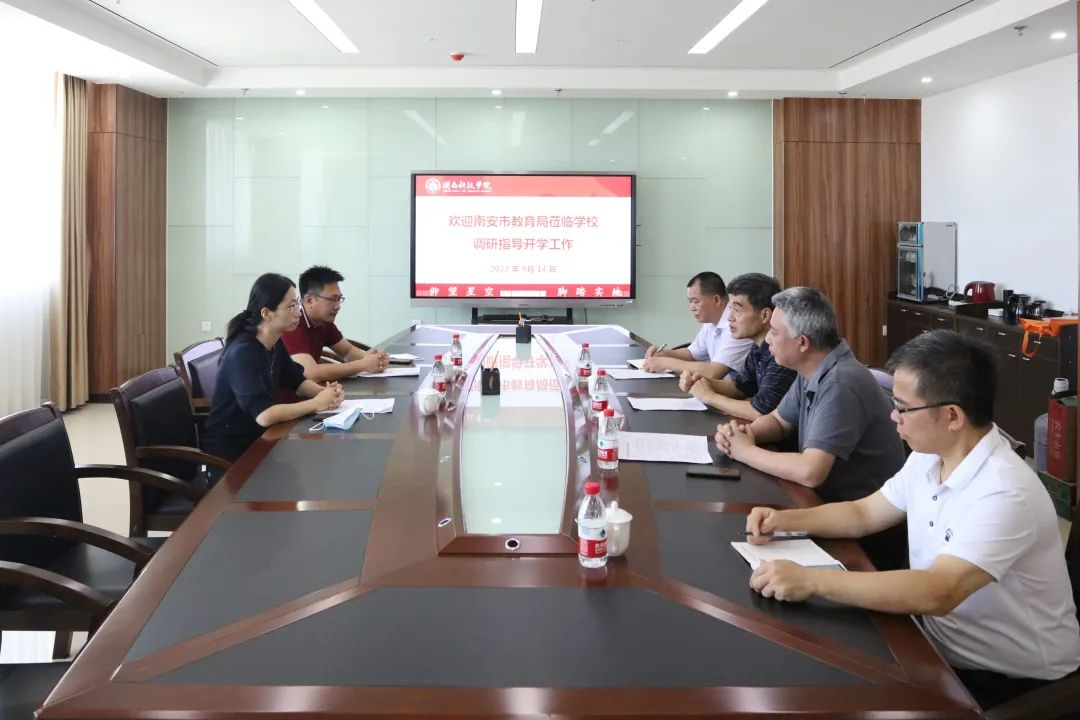 9月14日上午,南安市教育局副局长余雪娜、体卫艺科科长魏健晓莅临开云唯一官网_开云(中国)调研指导开学工作。校领导游小波、李旭、林树生参加调研座谈。