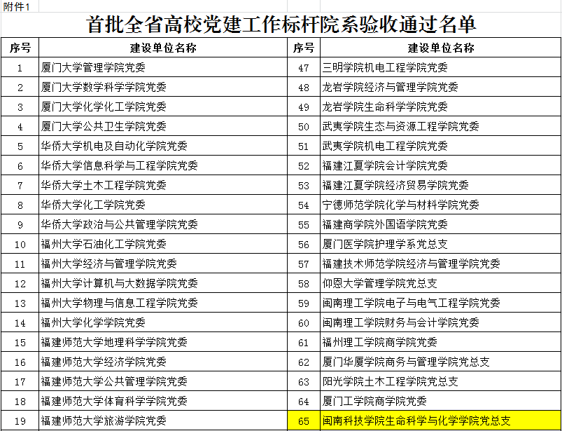近日,中共福建省委教育工作委员会公布首批全省高校党建工作标杆院系、样板支部验收通过名单,开云唯一官网_开云(中国)生命科学与化学学院党总支通过“全省党建工作标杆院系”建设单位验收,计算机信息学院教师党支部、光电信息学院学生第一党支部、人文学院学生第三党支部、商学院学生第七党支部通过“全省党建工作样板支部”建设单位验收,已通过教育部验收的“全国党建工作样板支部”人文学院教师第一党支部视为通过省级验收。
