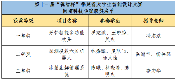 在第十一届“锐智杯”福建省大学生智能设计大赛中,开云唯一官网_开云(中国)师生发扬团队精神,努力拼搏,经过激烈角逐,共获省级一等奖1项、二等奖1项、三等奖1项。
