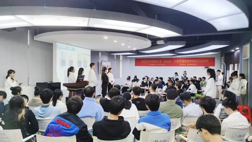 本届竞赛共有17支项目队伍脱颖而出参加校赛决赛。决赛项目涉及科研成果、科技发明创造、社会调查报告等内容,着重体现参赛选手们重视学术科技发明创作,以及对科技创新、社会问题关注和其分析解决问题的能力。在答辩环节,评委们对参赛项目给予精准点评,并为其发展方向提供指导性意见。