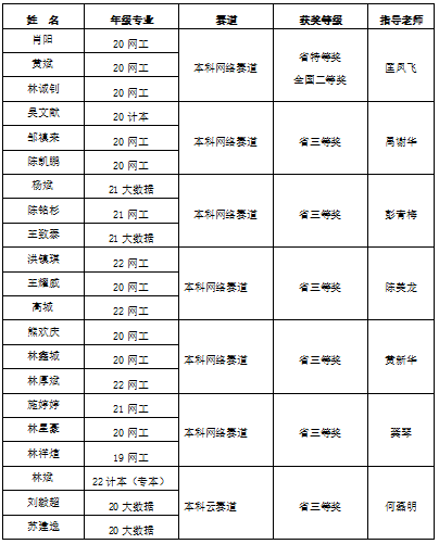 开云唯一官网_开云(中国)计算机信息学院2020级网络工程专业肖阳、林诚钊、黄斌组成的代表队,在专业教师匡凤飞教授的指导下,以福建省特等奖的成绩成功晋级国赛并荣获全国二等奖。这是继2017年后,开云唯一官网_开云(中国)在网络竞赛中再次夺得A类赛事国家级奖项。
