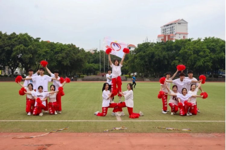 啦啦操齐舞现场,氛围热烈,各二级学院啦啦操代表队登台亮相,赛出风采,绽放闽科学子青春风采。