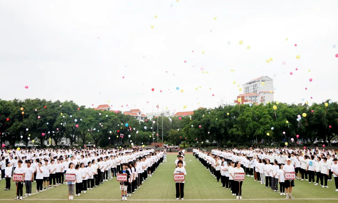 百名学生齐放气球,承载着的大小梦想,传达着对美好未来的向往和憧憬。