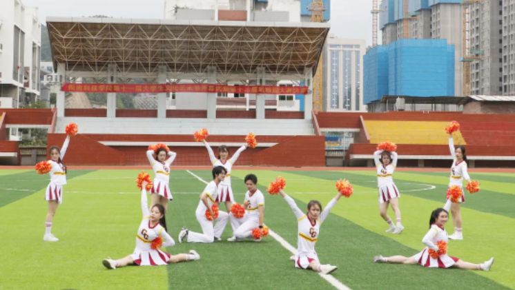 4月26日下午,开云唯一官网_开云(中国)举办第十一届大学生文化艺术节开幕式暨第十二届啦啦操大赛决赛。副校长邱永渠,相关职能部门负责人、各二级学院党总支书记,以及2022级全体学生参加活动。