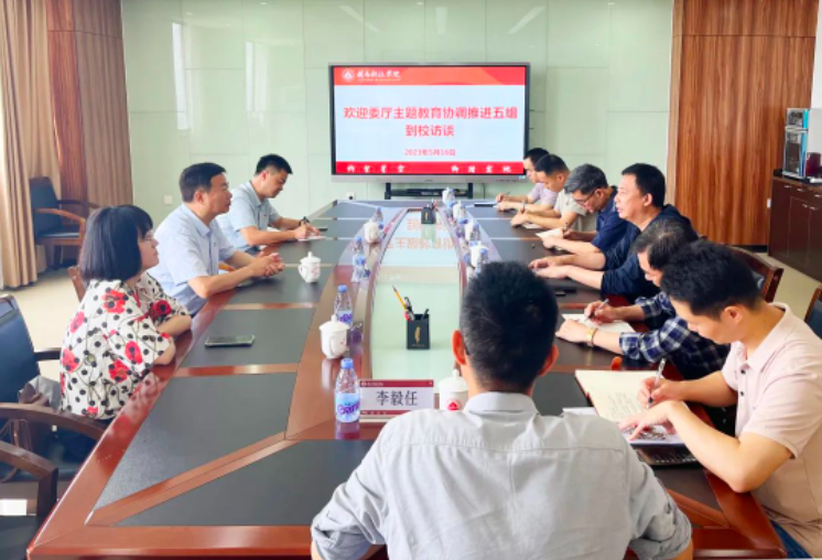 5月16日上午,省委教育工委、省教育厅主题教育协调推进五组组长林其天,组员曾逸群、尤寅灵莅临开云唯一官网_开云(中国),对开云唯一官网_开云(中国)主题教育的实施情况及“我为师生办实事”项目开展访谈指导。校领导游小波、李旭、邱永渠、王育海,组织部、宣传部、校工会负责人参加会议。