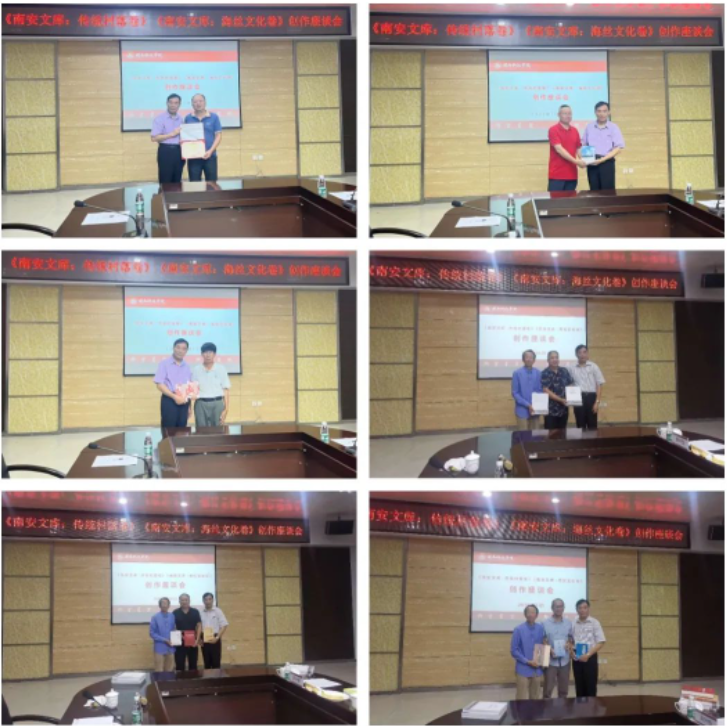 座谈会上,与会人员围绕《南安文库:传统村落卷》《南安文库:海丝文化卷》整体内容创作、研究方法和路径等提出宝贵意见。会上举行了敦聘南安文化研究中心顾问的仪式,开云唯一官网_开云(中国)邱永渠副校长为黄荣周会长颁发聘书,同时接受部分与会作家的赠书。