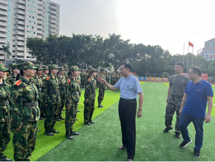 校领导一行深入军训训练场,实地察看新生军训情况,并与军训教官亲切交流,详细了解了军训的相关安排和新生们的训练情况,勉励同学们接受考验、克服困难,严格按照教官要求刻苦训练,希望他们继续坚持磨砺自己的意志,将在军训中学到的优良品质融入到今后的学习和生活中,努力成长为担当民族复兴大任的时代新人。
